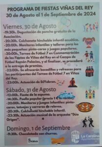FIESTAS VIÑAS DEL REY 2024 Del 30 de Agosto al 1 de Septiembre: